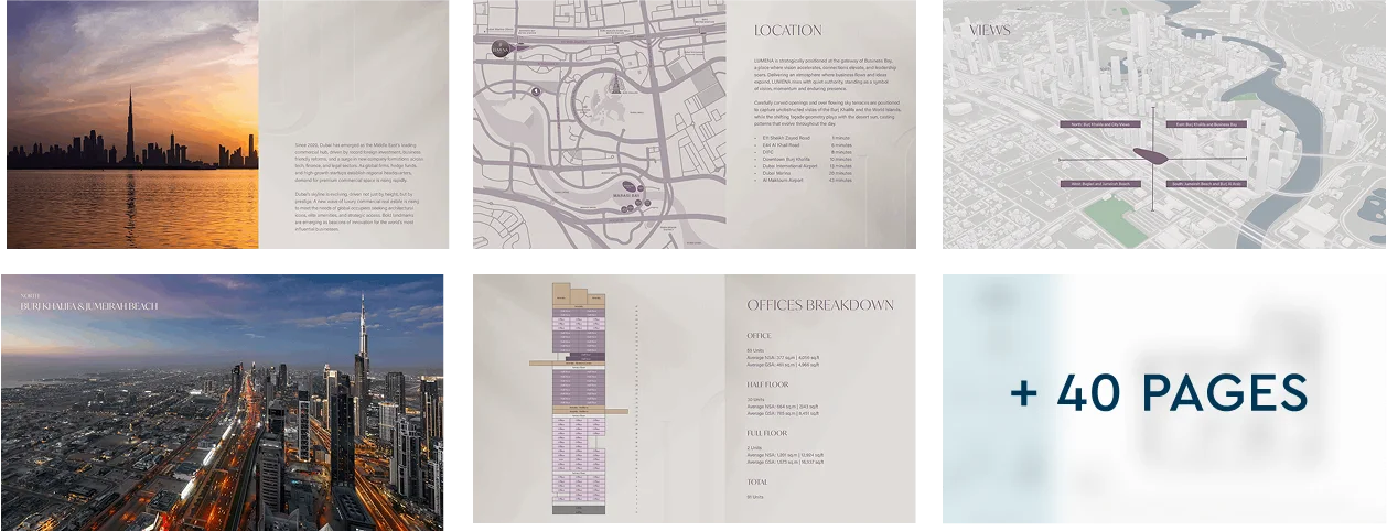 Lumena commercial tower offers rare freehold ownership of Grade-A commercial space along Sheikh Zayed Road, at the intersection of Business Bay and Downtown Dubai. With limited supply, high visibility, and flexible floor formats, the project is positioned for long-term value retention and end-user demand.